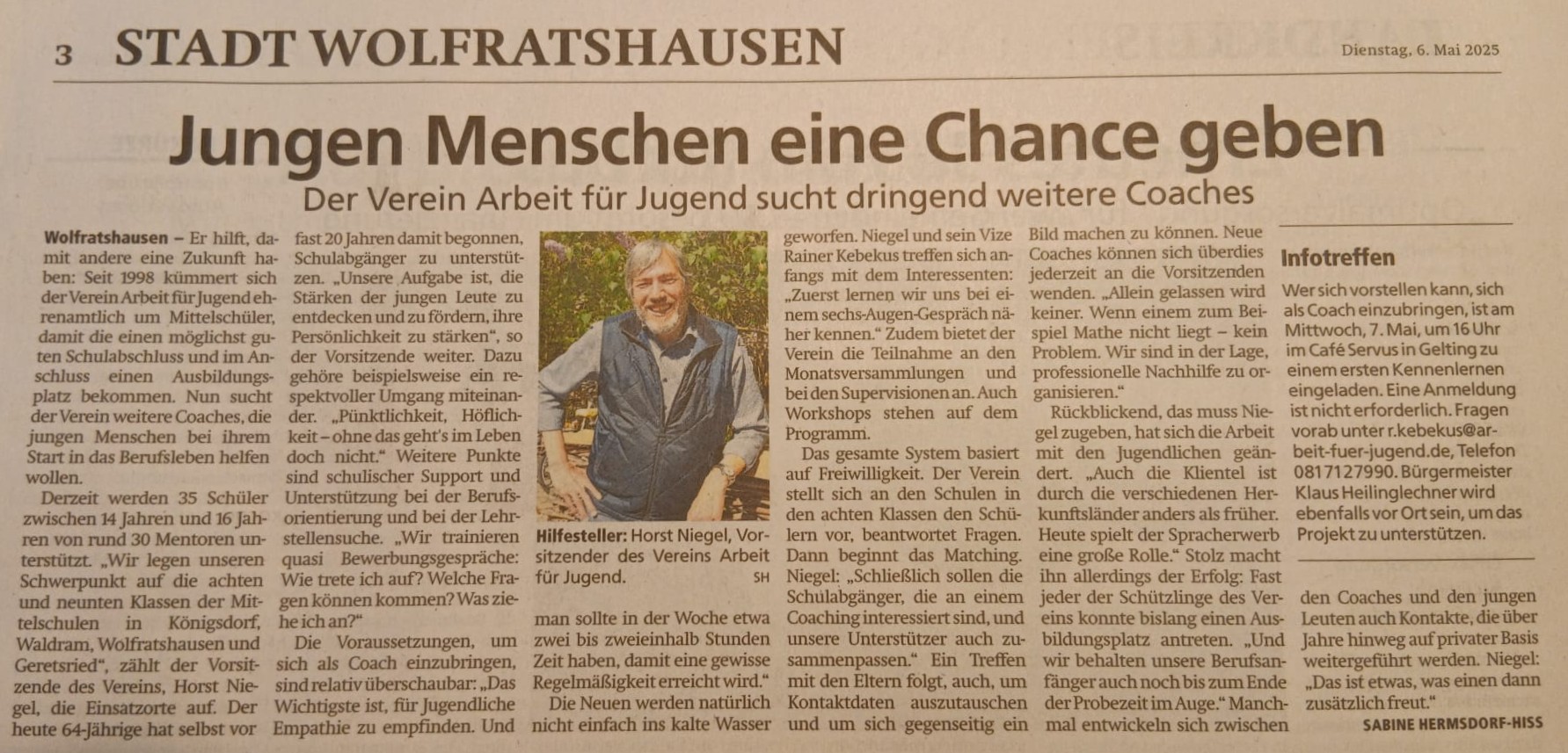 Der Verein sucht weitere Coaches / 06.05.2025 Münchner Merkur