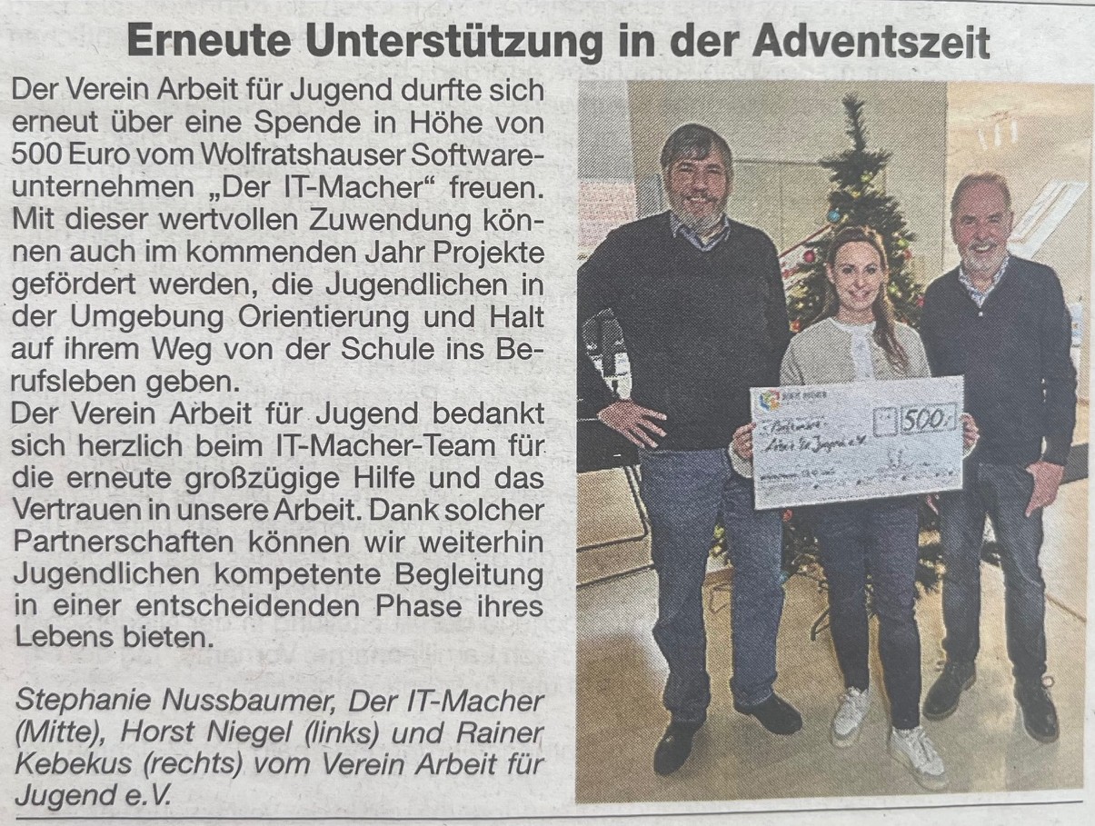 Großzügige Spende vom Software-Unternehmen IT-Macher / 21.12.2025 Isar-Kurier
